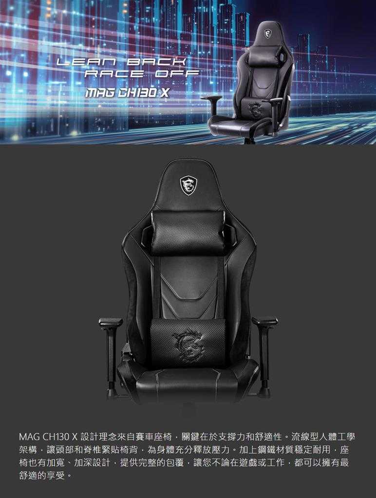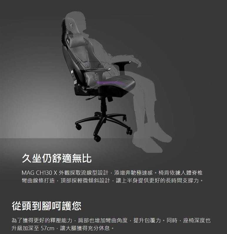● 久坐仍舒適無比:MAG CH130X 外觀採取流線型設計,添增奔馳急速感。椅背依據人體脊椎彎曲線條打造,頂部採輕微傾斜設計,讓上半身提供更好的長時間支撐力。