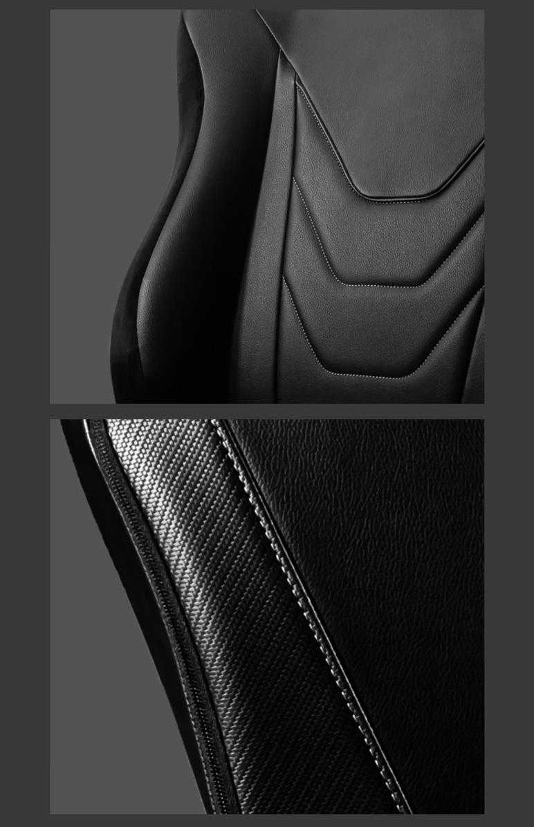 ● 頂級用料:座椅側邊使用的高級絨布設計,提供柔軟舒適的觸感,加上賽車皮革、車線壓條和碳纖圖騰拼貼,充分展現運動風。