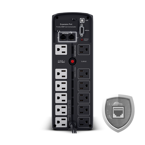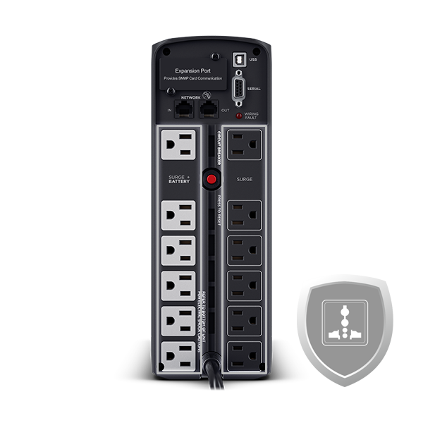 此產品具備自動穩壓功能 (AVR),在市電不穩定時,可調節低電壓和過電壓,提供設備穩定的電力。