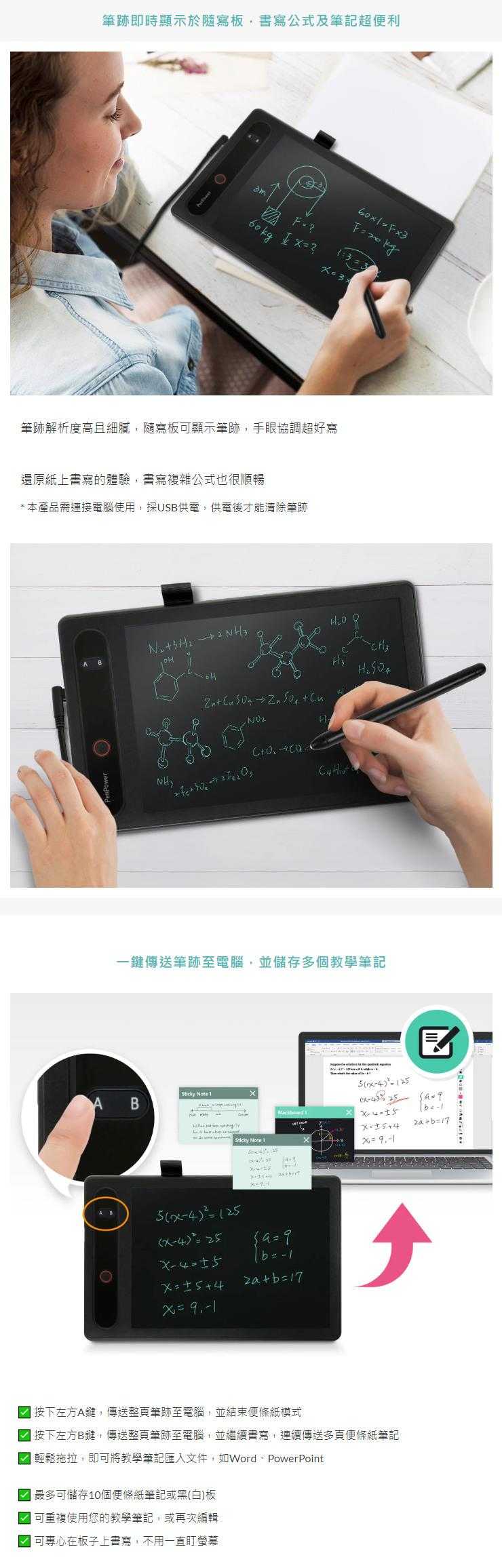 ●筆跡即時顯示於隨寫板,書寫公式及筆記超便利