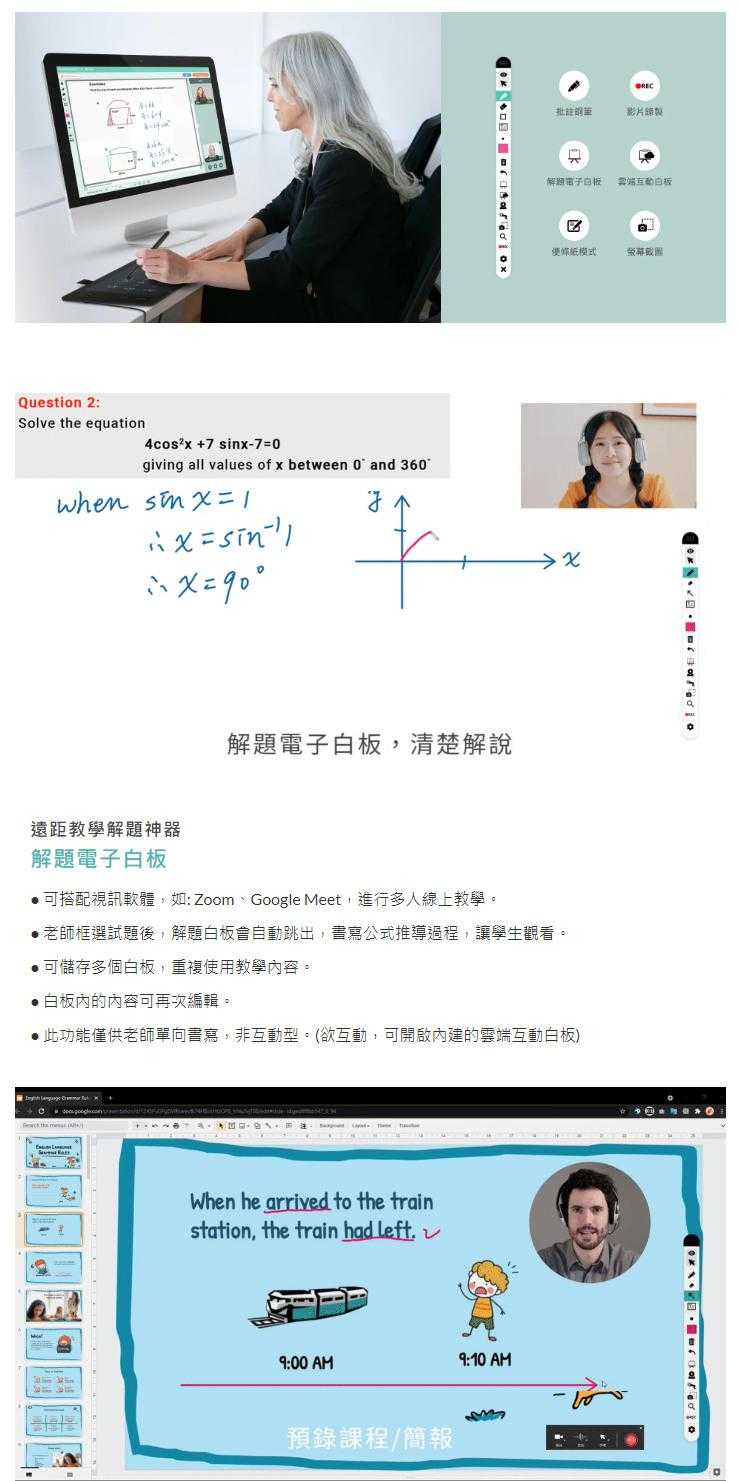 ●可搭配視訊軟體,如: Zoom、Google Meet,進行多人線上教學