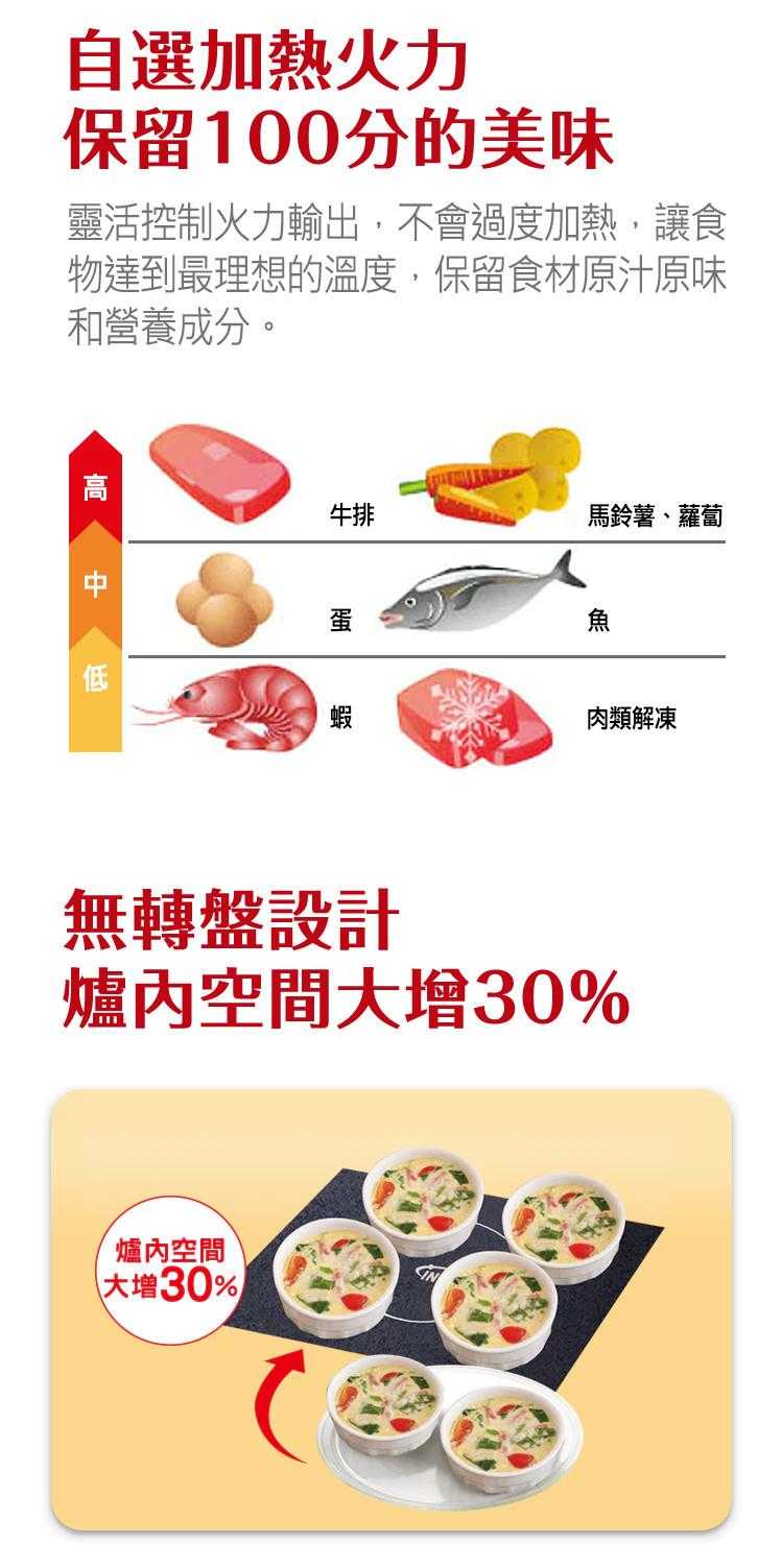 ●無轉盤設計,爐內空間大增30%