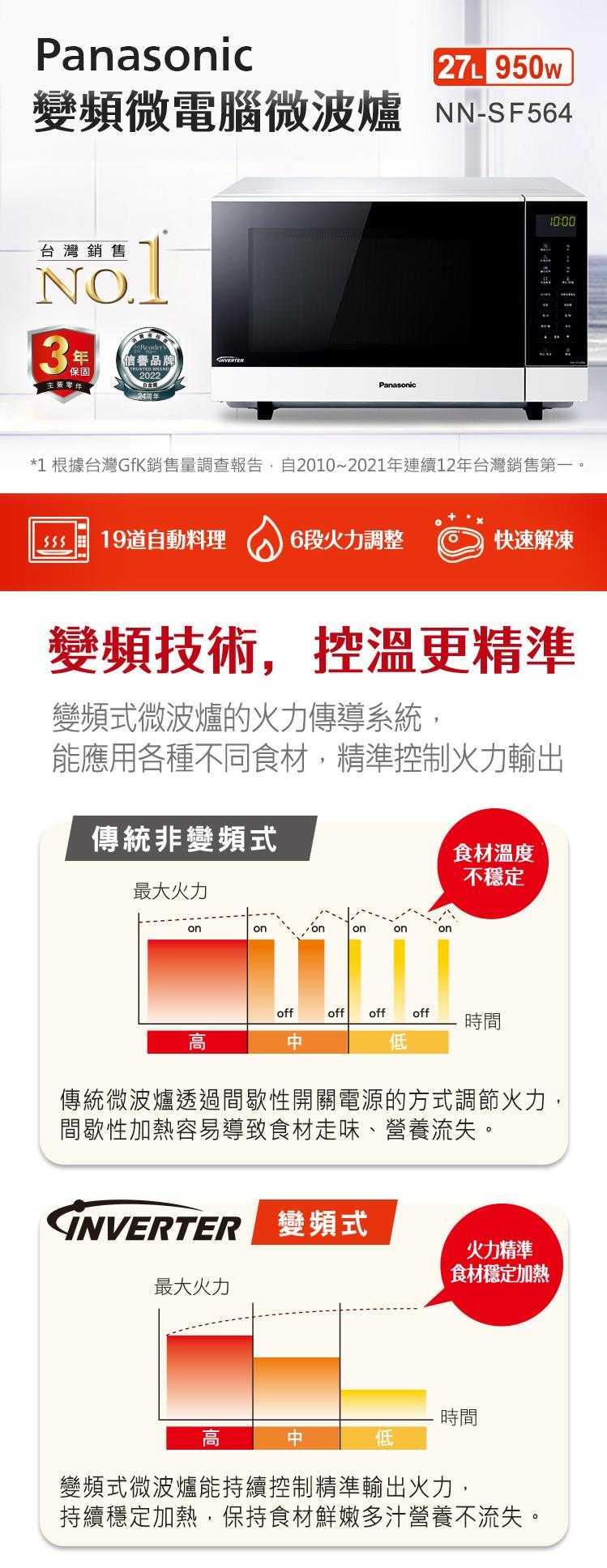 Panasonic 國際牌 27L 變頻微電腦微波爐 NN-SF564