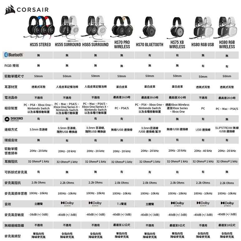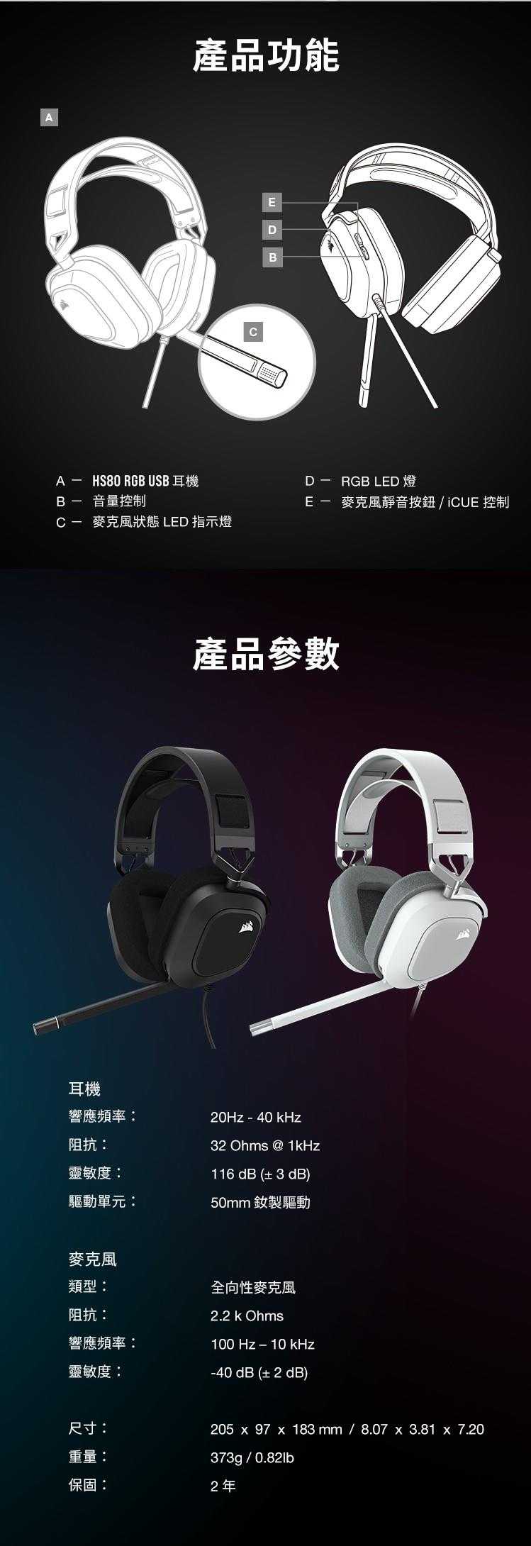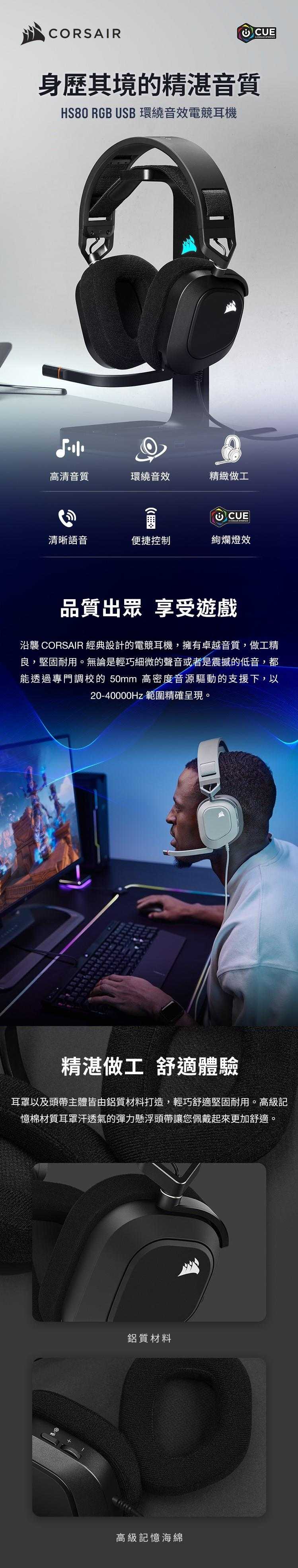 品名:Corsair 海盜船 HS80 RGB USB 耳機麥克風