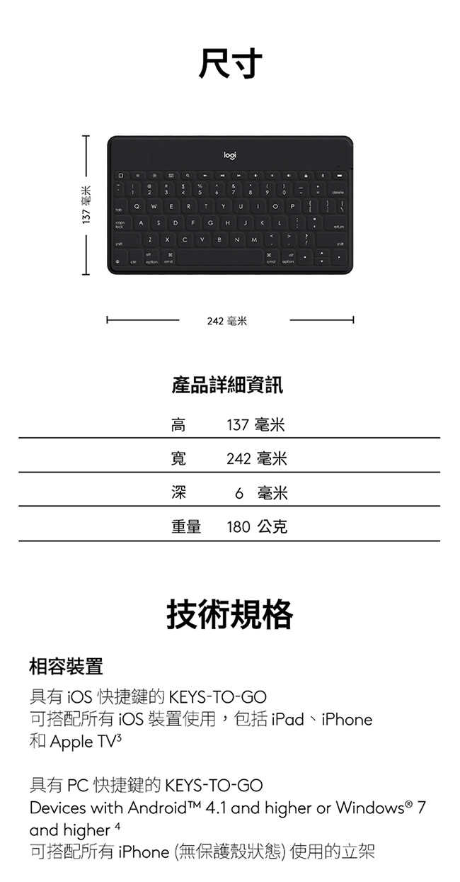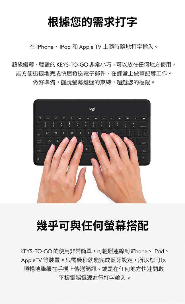 。搭配iOS所有裝置使用,快捷鍵適用於 iPhone、iPad 和 Apple TV等裝置