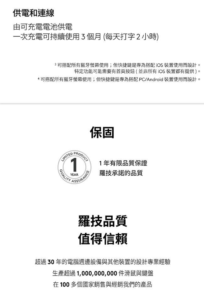 。電力持久,一次充電可以使用長達三個月