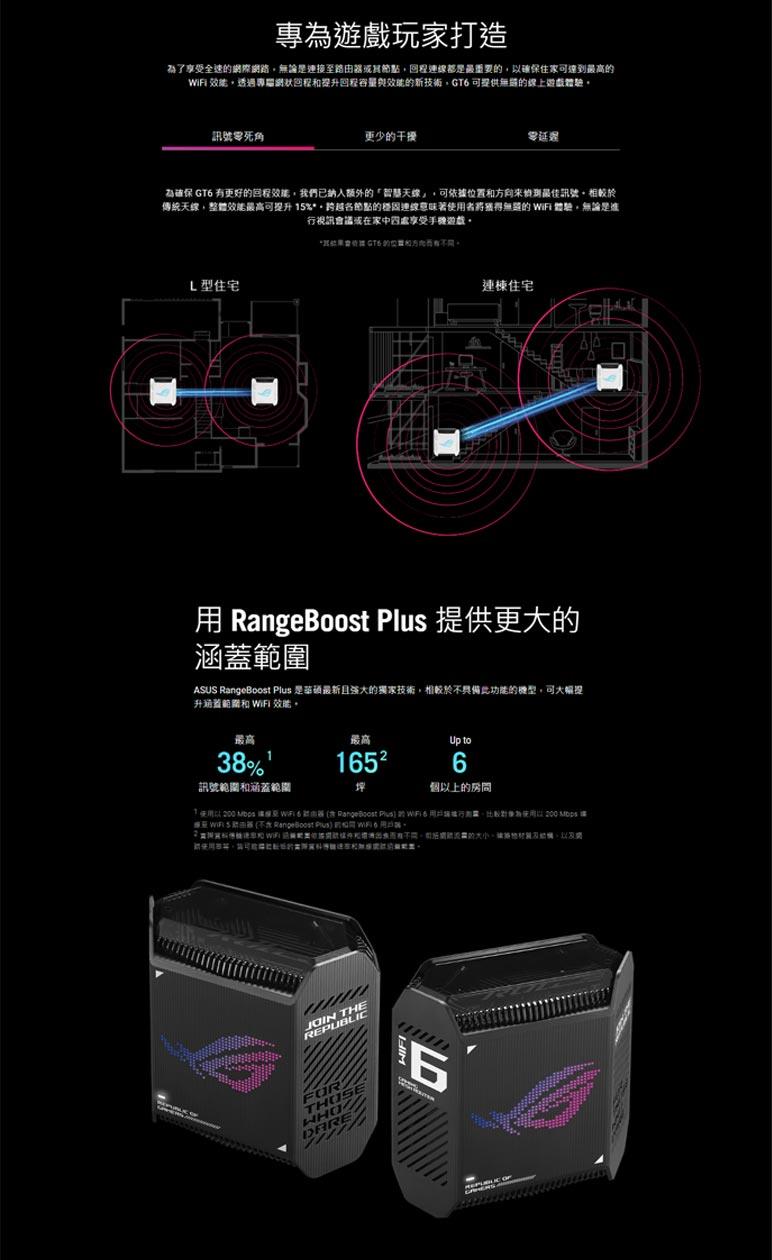 ● 九支強大的內部天線和 ASUS RangeBoost Plus 技術最高可涵蓋 165 坪的範圍