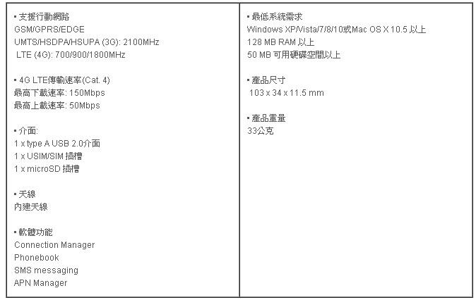 .在LTE模式下最高支援下載150Mbps/上傳50Mbps傳輸速率