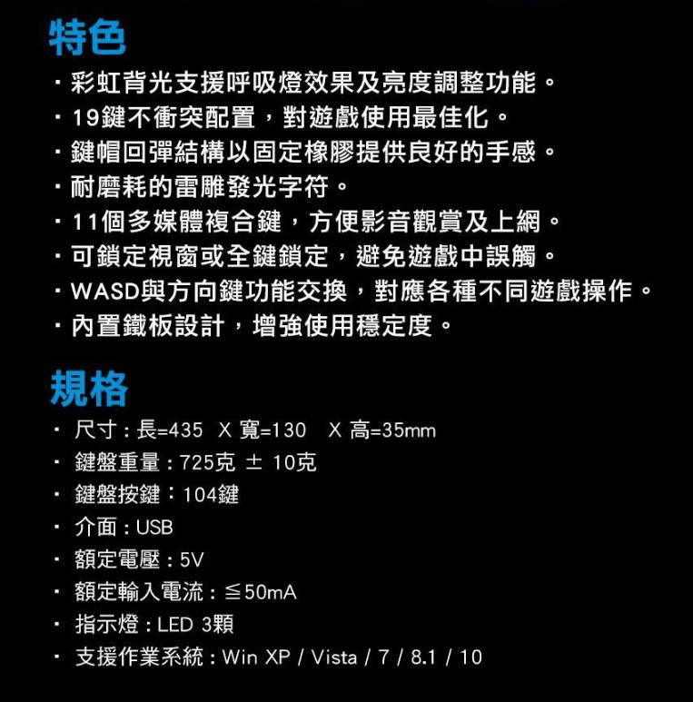 ●彩虹背光支援呼吸燈效果及亮度調整功能