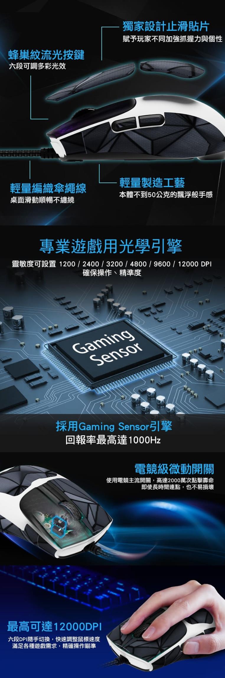 ●高解析12400DPI電競引擎搭配1000Hz迅捷回報率