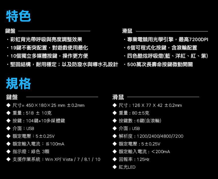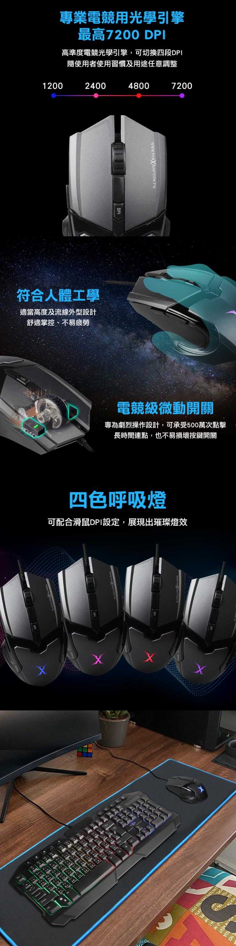 ●專業遊戲用光學引擎,最高7200 DPI