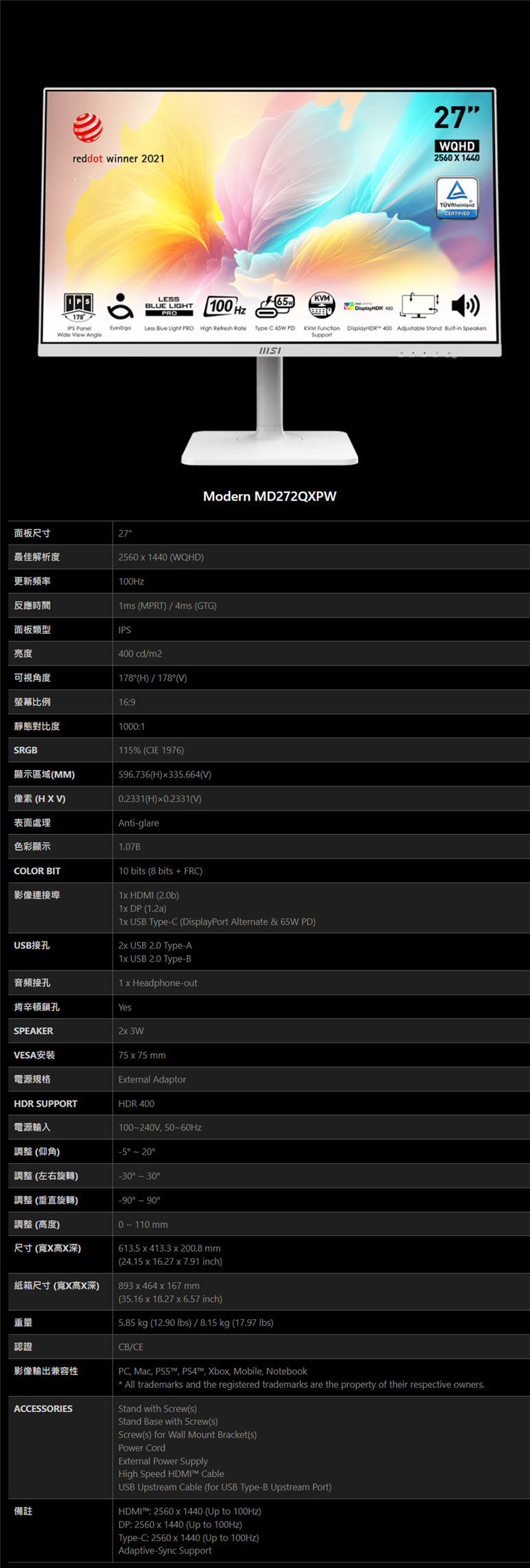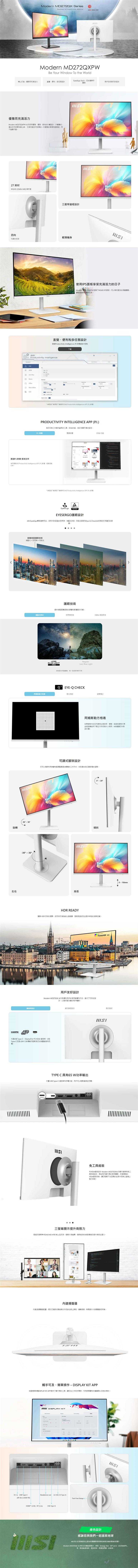 MSI微星 27型 Modern MD272QXPW 平面美型螢幕 {{specImage.SkuName}}