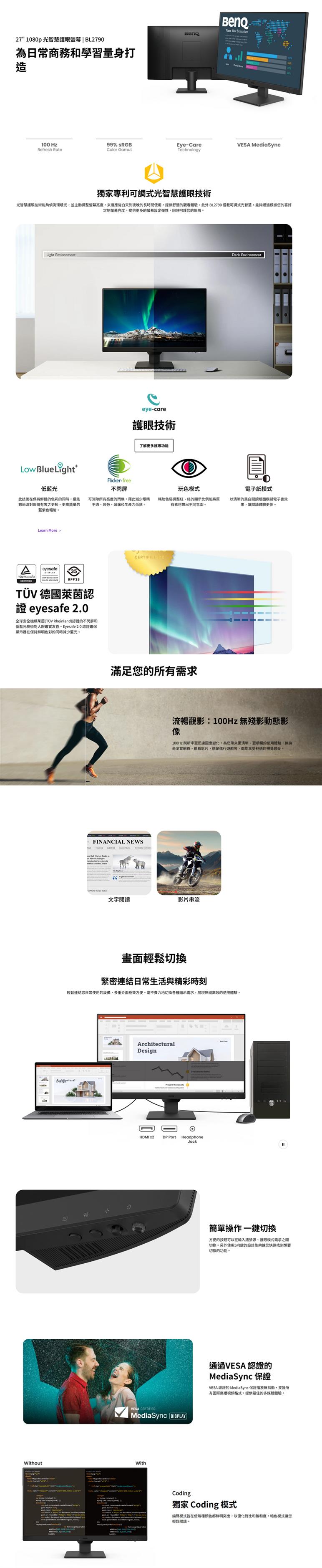 BENQ 27型 BL2790 光智慧護眼螢幕 {{specImage.SkuName}}
