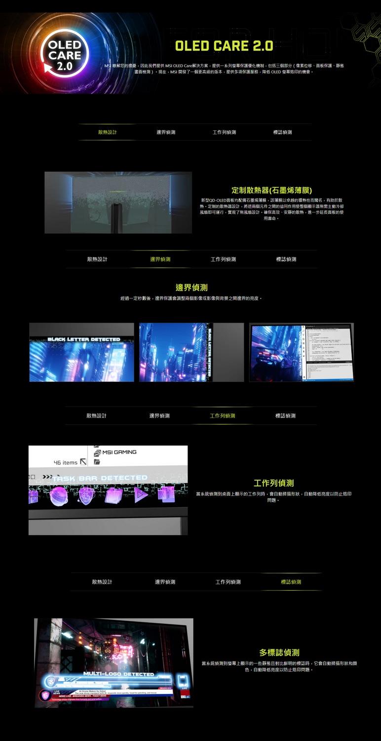 ● MSI OLED Care 2.0 – 降低 OLED 殘影/烙印的風險
