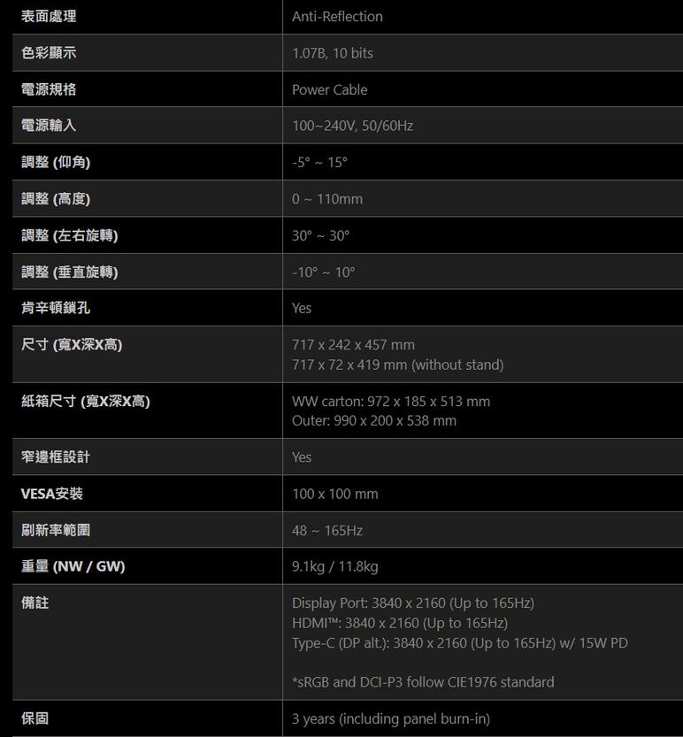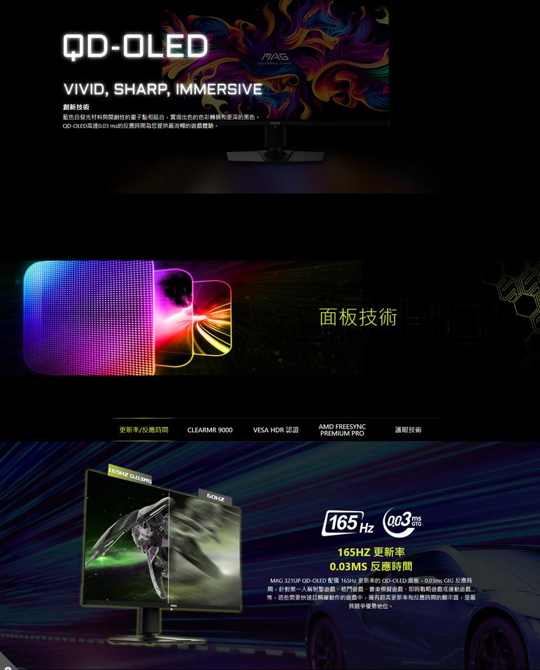 ● 最快的 0.03 毫秒 GtG 反應時間和165Hz 刷新率