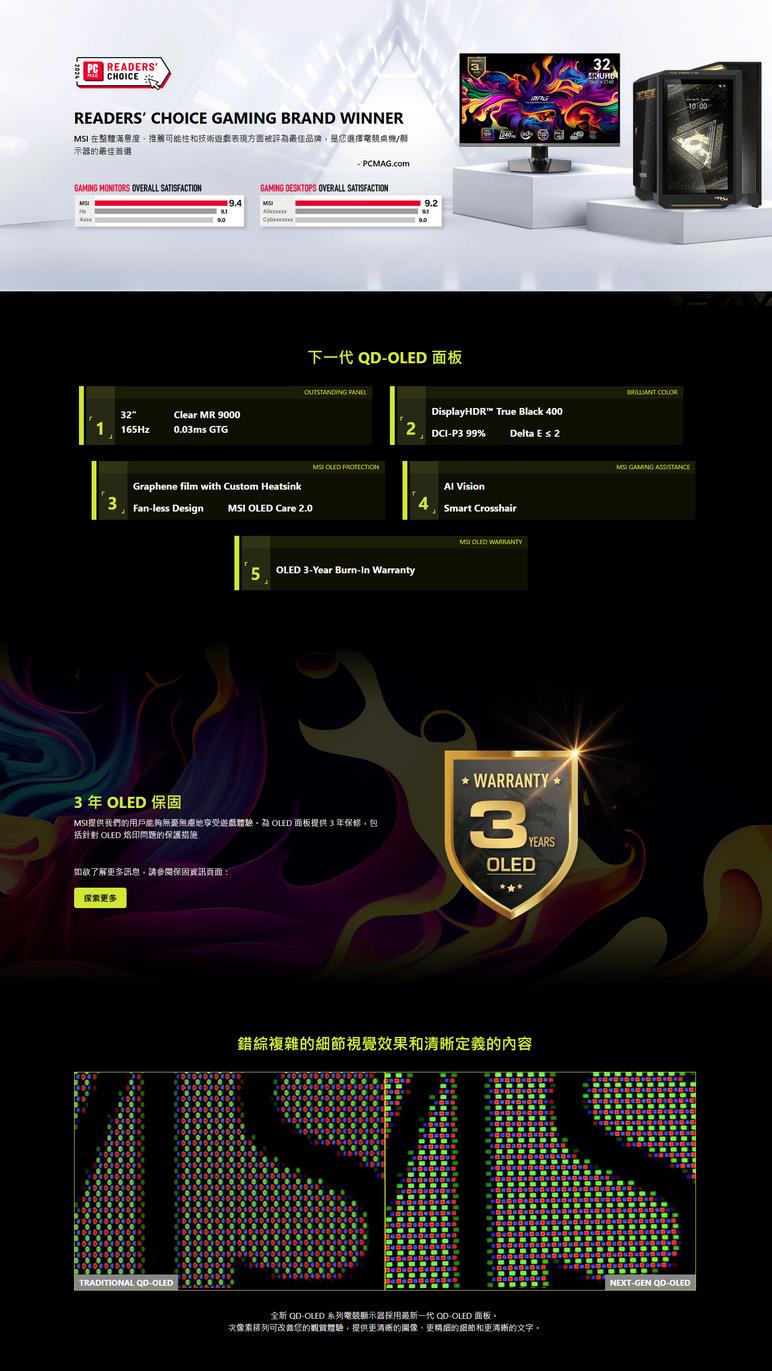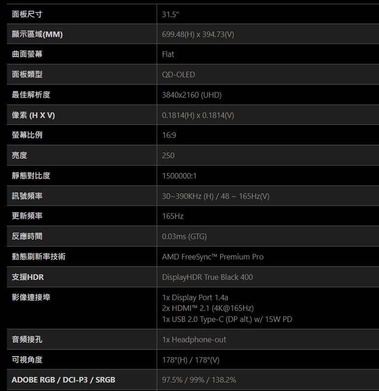 ● 第三代 QD-OLED 面板 – 具有令人驚嘆的影像品質和快速反應時間