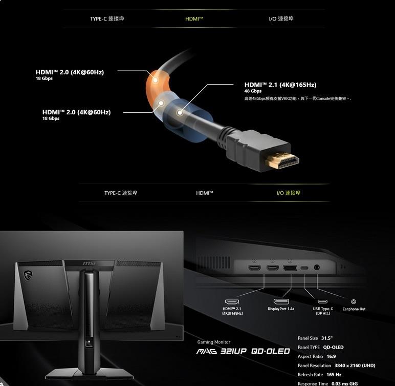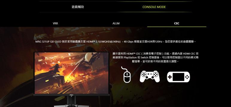 ● Console Mode – 提供 HDMI™ 2.1 (4K@165Hz) 完整的 48 Gbps 頻寬