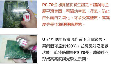 * 使用後,印刷電路板上會形成一層薄膜,使焊接時能輕易接著,具有助焊之效果。