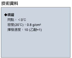 * 請勿直接噴於火焰上,使用完之空瓶勿丟於火中焚毀