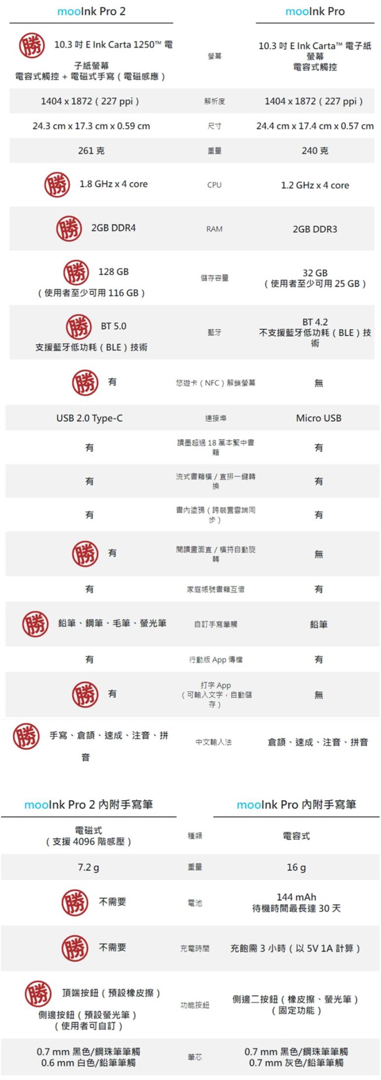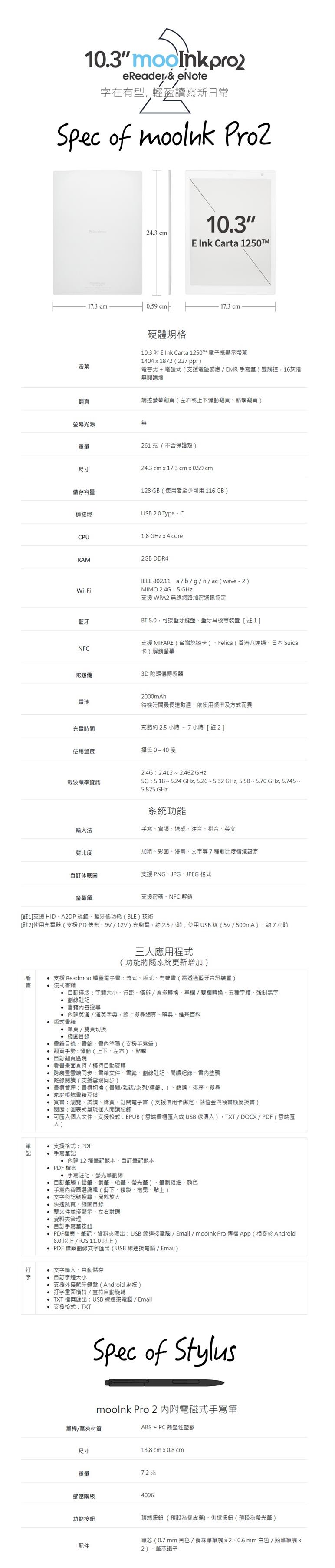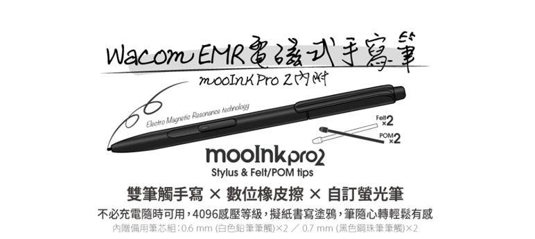 * 盒內附 EMR 電磁式手寫筆1支與筆芯4個(鋼珠筆 x 2,鉛筆 x 2)(不適用於一代 mooInk Pro 系列產品)