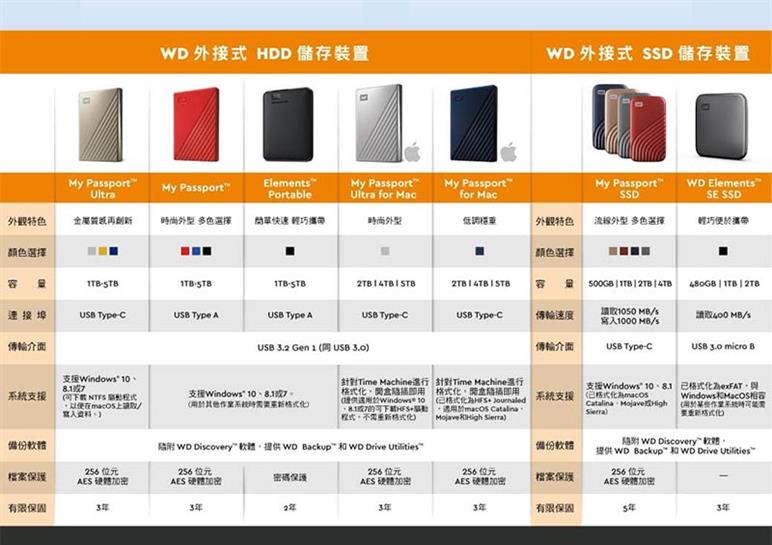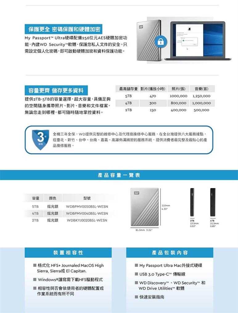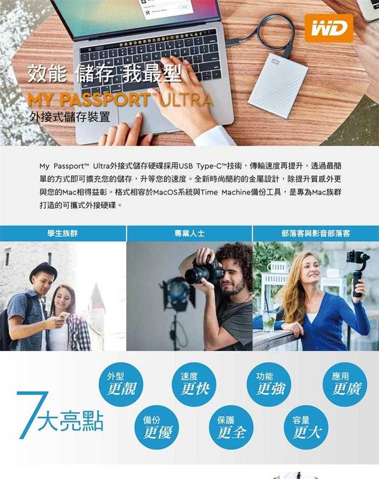 ● WD My Passport Ultra for Mac 2TB 2.5吋USB-C行動硬碟