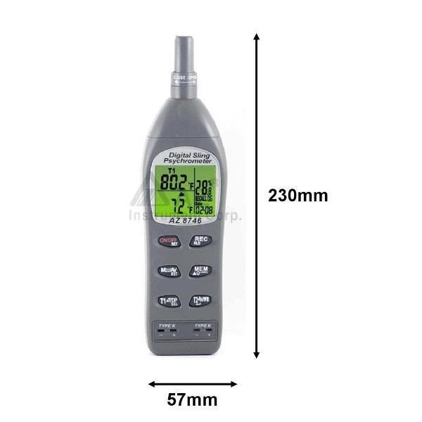 附2組K型熱電藕,可測量並檢視溼度、乾球、濕球、露點、溫度、外部溫度及T1-T2溫度差異。
