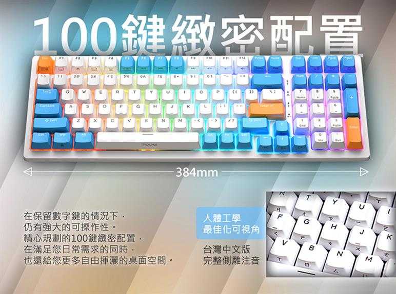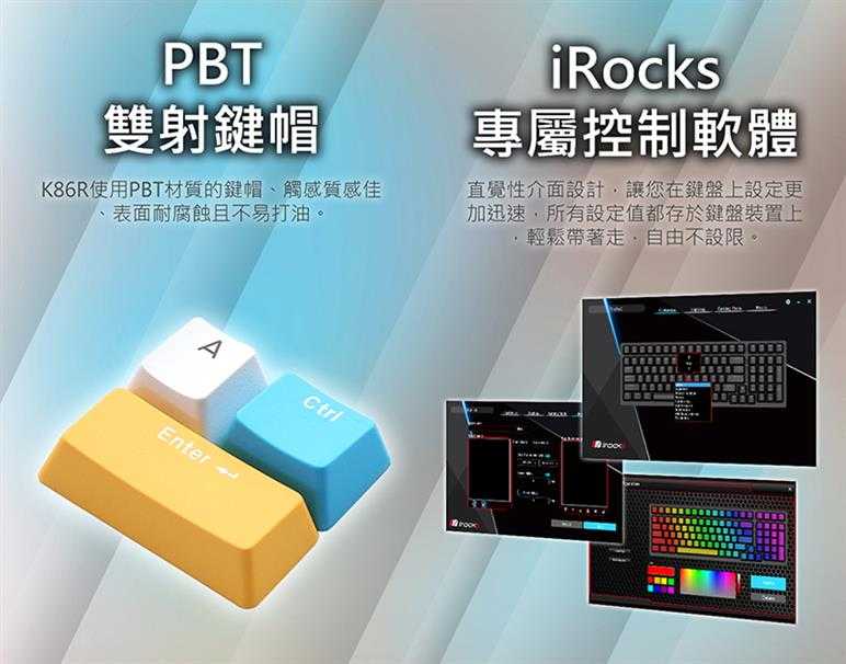 ●PBT二色成形鍵帽,乾爽止滑耐打油