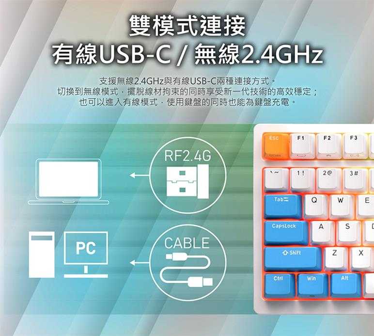 雙模介面: 有線: USB & 無線: 2.4GHz