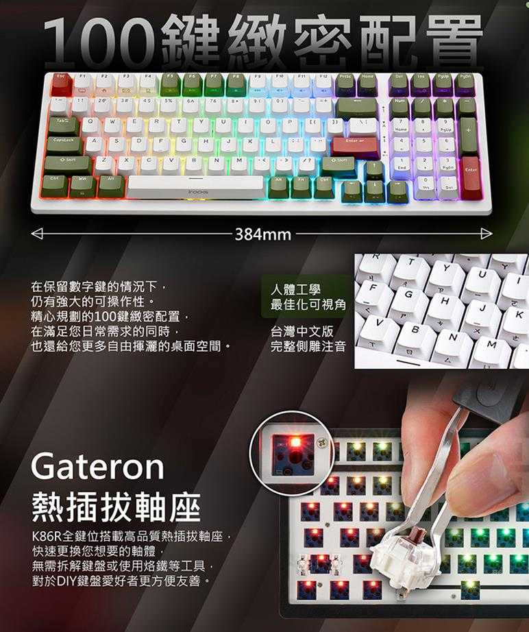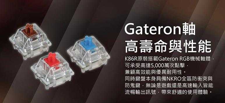 ●全鍵區採用Gateron熱插拔軸座,可自行替換鍵軸