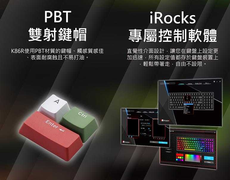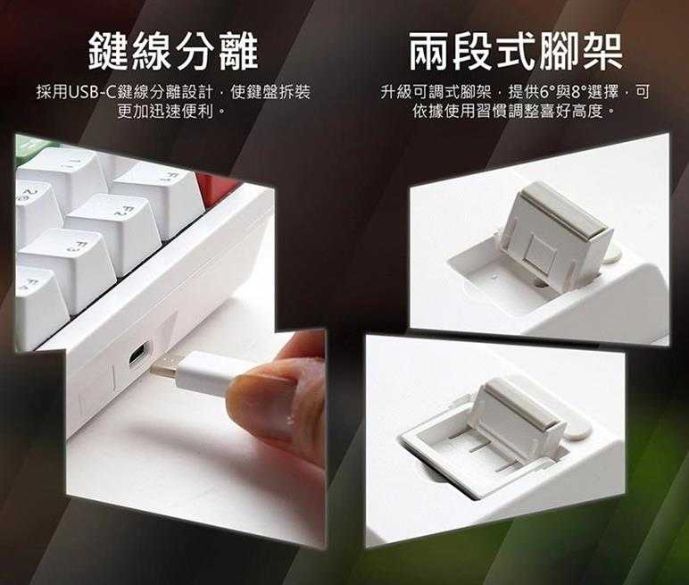 ●PBT二色成形鍵帽,乾爽止滑耐打油