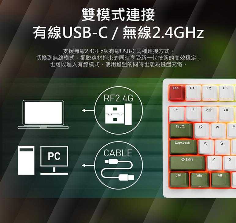 雙模介面: 有線: USB & 無線: 2.4GHz
