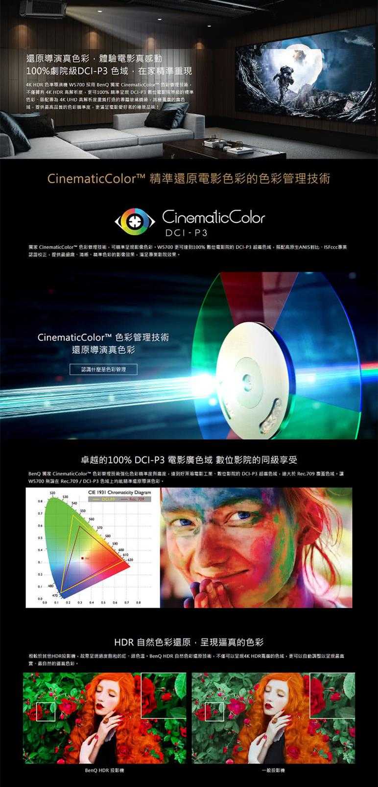 ◎ 獨家CinematicColor 色彩管理技術,100% DCI-P3 數位電影廣色域,真實還原電影色彩
