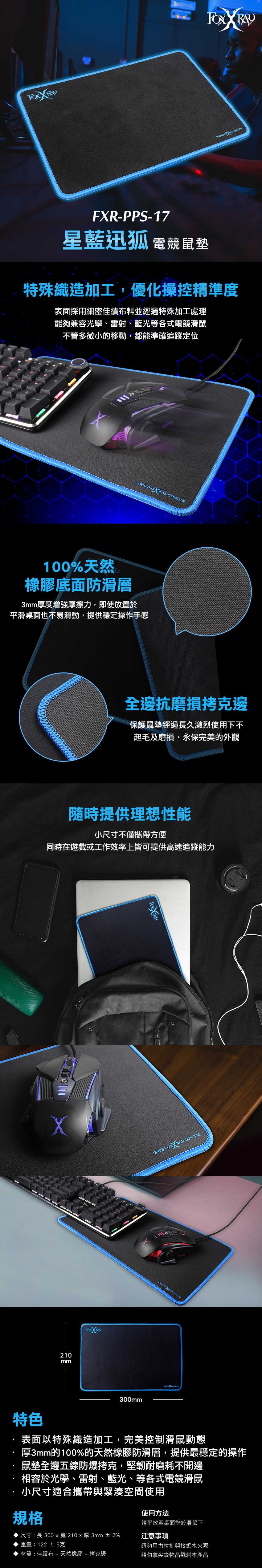●鼠墊全邊五線防爆拷克,堅韌耐磨耗不開邊