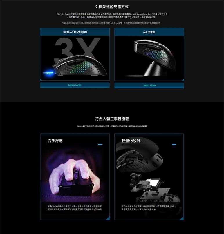 ● 支援MSI SNAP CHARGING及隨附充電座