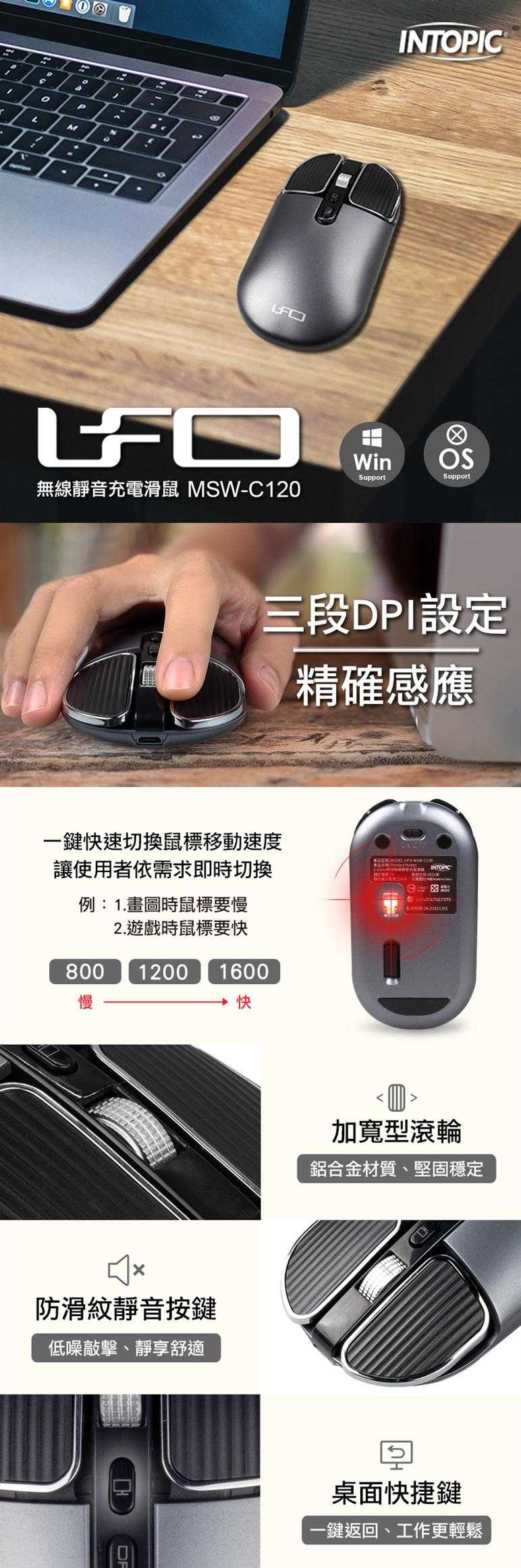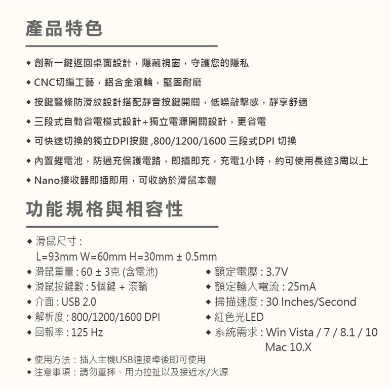 ●可快速切換的獨立DPI按鍵, 800/1200/1600 三段式DPI切換