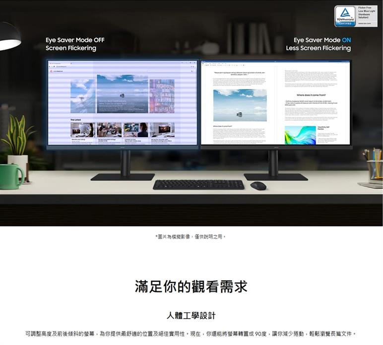 ● 抗藍光, 護眼, 零閃屏, 廣視角, 超薄機身, 節能, 窄邊框
