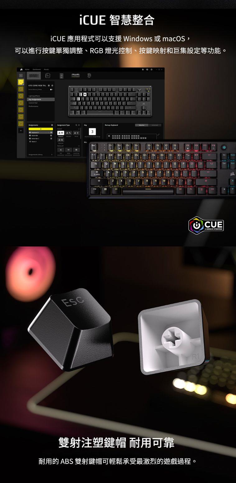 CORSAIR 海盜船 K70 CORE TKL 無線電競鍵盤 紅軸 黑 英文