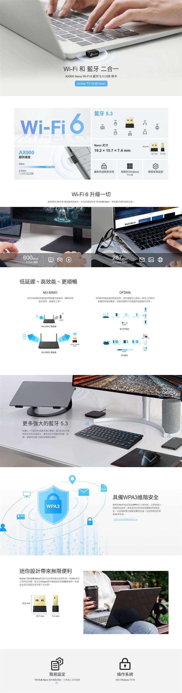 - 高速 WiFi – 高達900Mbps 速度,2.4GHz為287Mbps,5GHz為600Mbps,將您的設備升級至更高的AX WiFi速度。