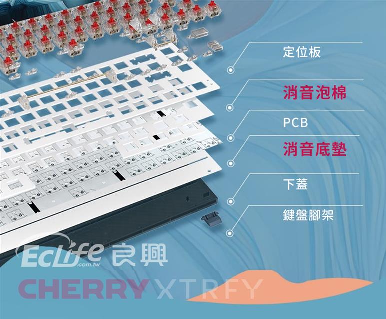 ● 雙層降噪材質(矽膠墊 & EVA泡棉)搭配金屬定位版 ,昇華打字手感