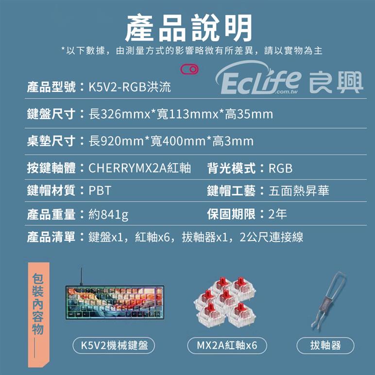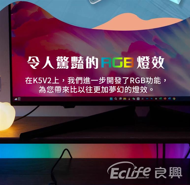 ● 五面熱升華PBT鍵帽,觸感細膩、不易打油