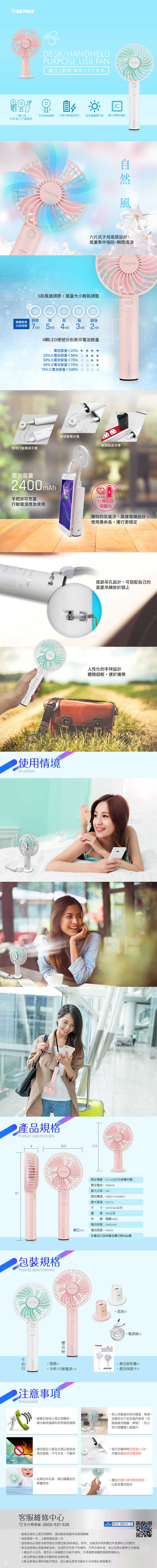 Esense 自然風/桌立/行動電源 手持風扇(粉)原價 469 【現省 170】