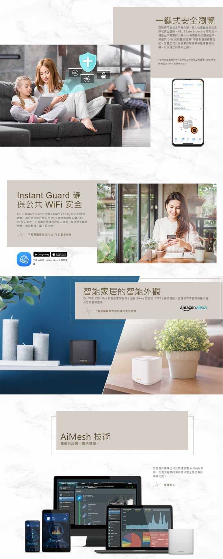 •全新Mesh系統 – 輕鬆架構全屋無線訊號,可任意遊走無縫切換不斷線,更可依需求靈活擴充設備,亦同步支援獨家AiMesh功能