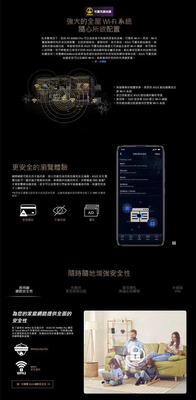 5.最佳可延伸式路由器選擇 — ASUS AiMesh 技術可延伸擴充不同型號華碩路由器串連成網狀Mesh系統,打造居家無縫Wi-Fi網路環境。