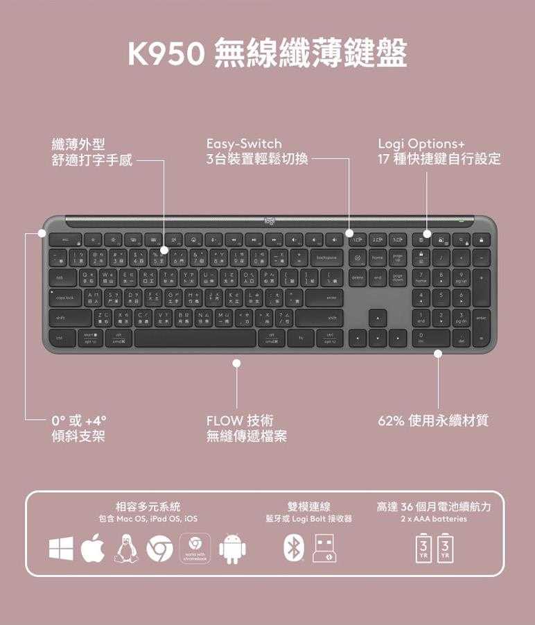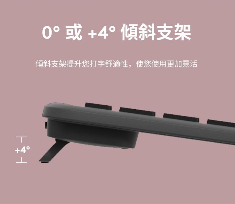 ● 鍵盤纖薄外型可調整 0° 或 +4° 支架