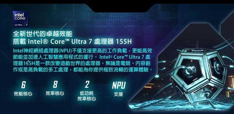 處理器:Intel Core Ultra 7 155H (1.4GHz/Turbo 4.8GHz)(Cache 24MB)