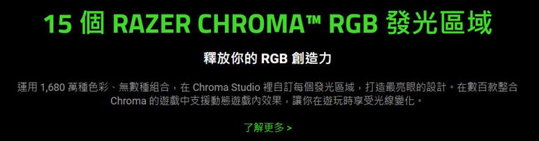 ● 15個 Chroma 燈光效果區域