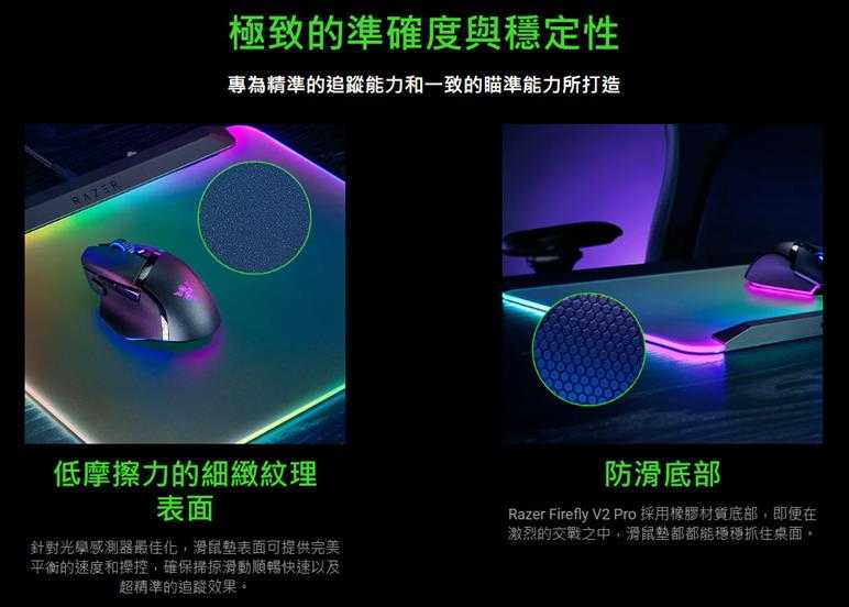 A1. 不會。Razer Firefly V2 Pro 搭載細緻的紋理表面,並針對光學感測器最佳化,隨時可進行快速的掃掠與精準的追蹤。