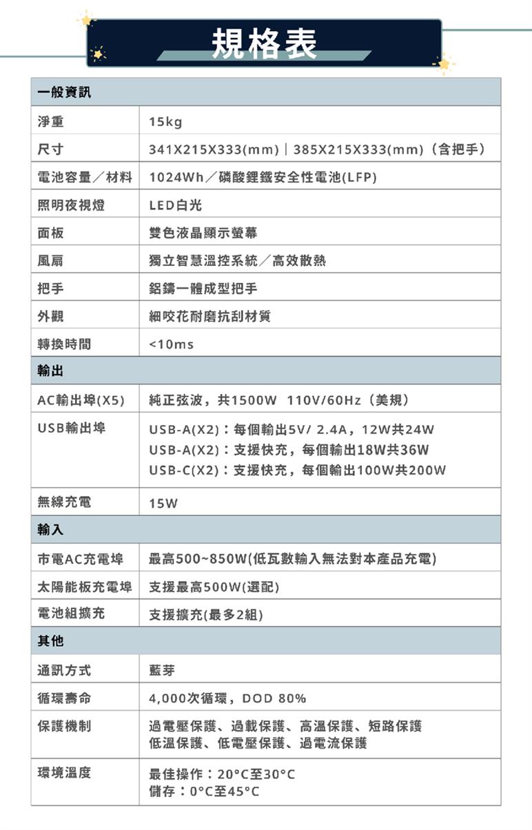 ◎ 1024Wh大容量(約27台10000mAh的行動電源)