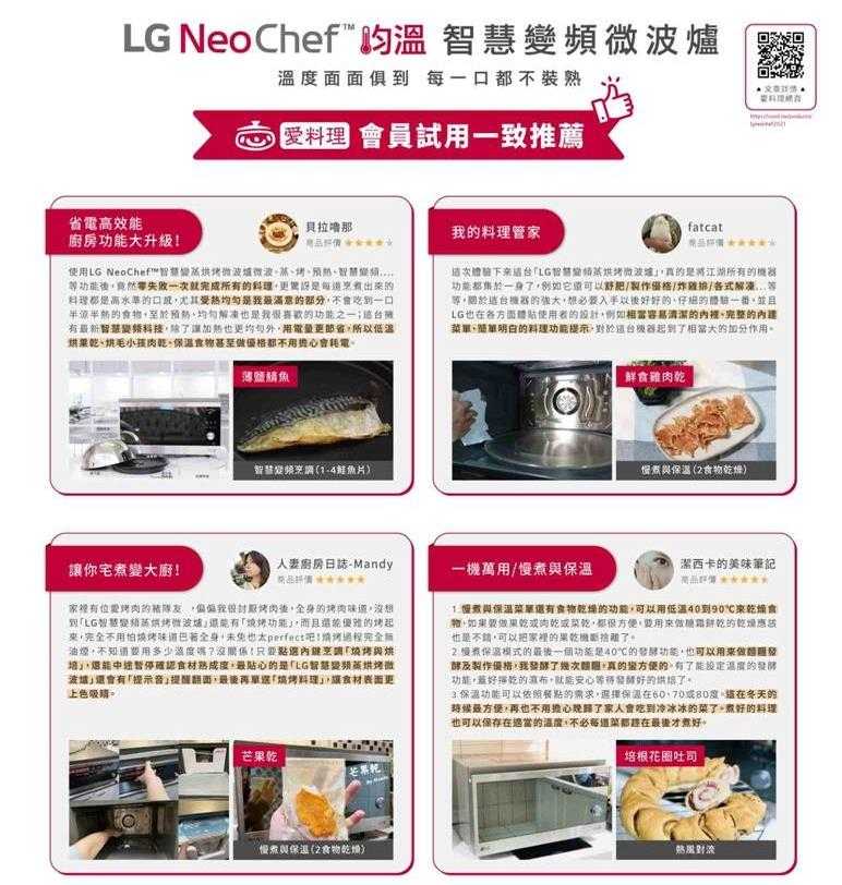● LG NeoChef 智慧變頻科技、高效率均溫烹調技術