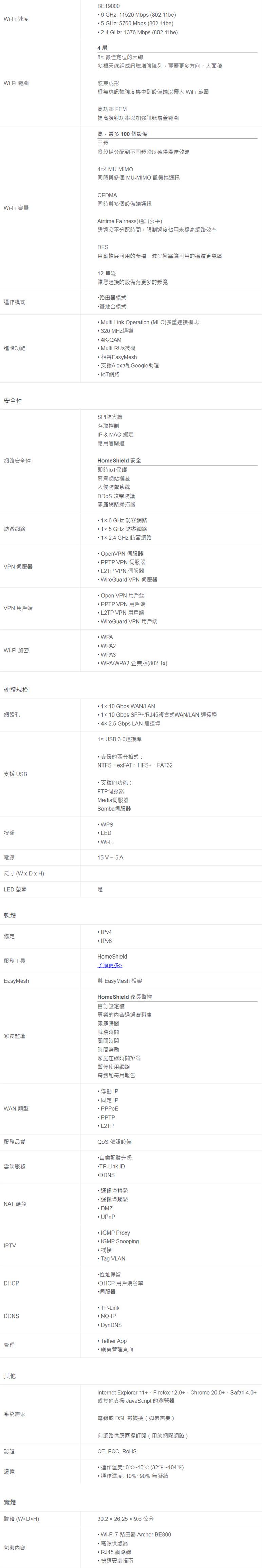 TP-LINK Archer BE800 BE19000 三頻 Wi-Fi 7 路由器 {{specImage.SkuName}}